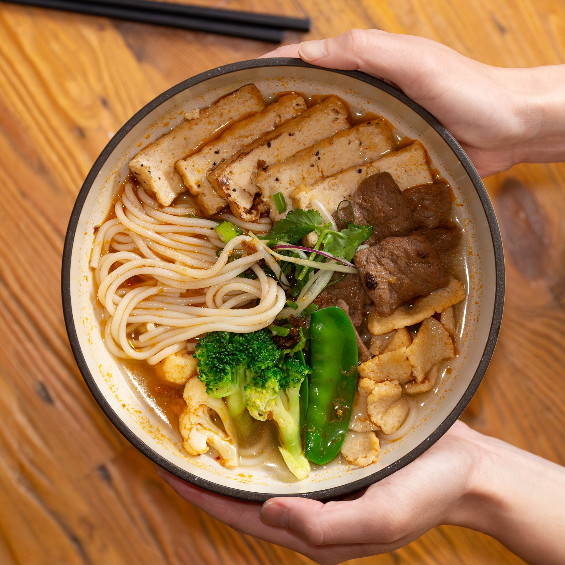 A bold, tongue-tingling Vietnamese broth poured over round rice noodles, bouncy tofu, and tender plant-based protein. Inspired by a restaurant favourite, crafted for effortless comfort at home.